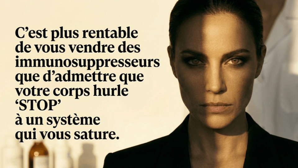 Le système de santé adore traiter le symptôme parce que c'est une 𝐫𝐞𝐧𝐭𝐞. Mais admettre que la polyarthrite ou le psoriasis sont les cris de guerre d'un corps qui refuse de se soumettre à une pression environnementale ou émotionnelle délirante ?